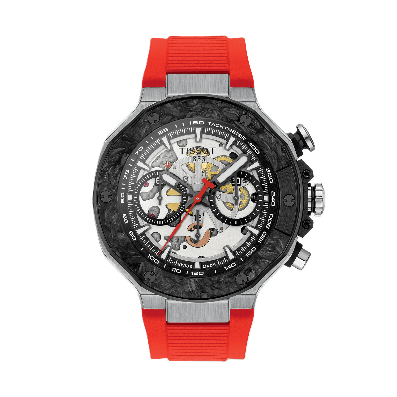 Um Tissots über zwei Jahrzehnte währende MotoGP™-Partnerschaft zu feiern, wird die legendäre, von Rennmotorrädern inspirierte T-Race-Kollektion im Jahr 2026 um neue Modelle erweitert. Dazu zählt diese Tissot T-Race MotoGP 2026 45mm, ein exklusives, skelettiertes Modell mit Automatik-Chronographenwerk.