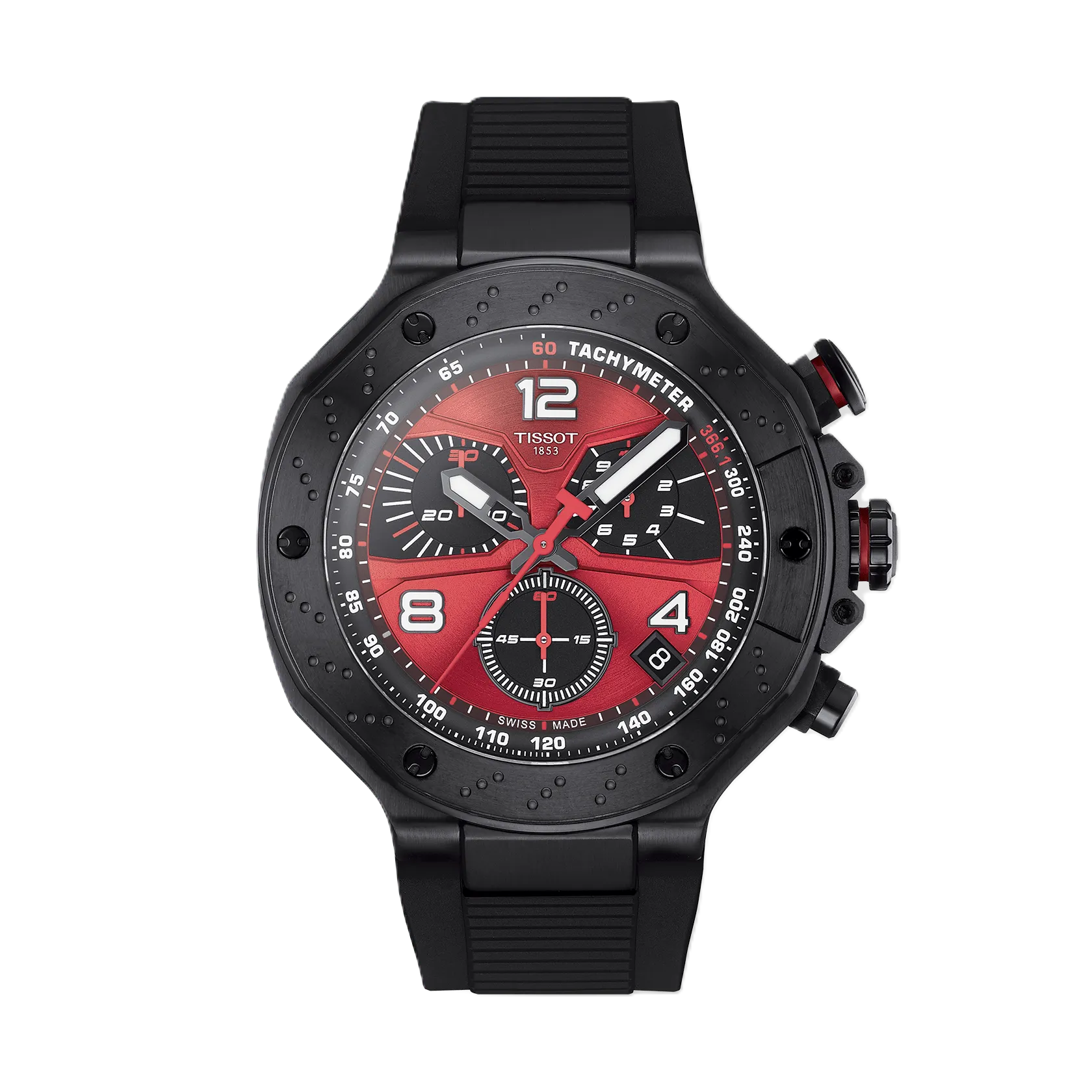 Um Tissots seit mehr als zwei Jahrzehnten bestehende MotoGP™-Partnerschaft zu würdigen, wird die beliebte, von Rennmotorrädern inspirierte T-Race-Kollektion im Jahr 2026 um neue Modelle ergänzt. Dazu zählt diese Tissot T-Race MotoGP 2026 45mm, ein exklusives, limitiertes Modell mit präzisem Quarz-Chronographenwerk.